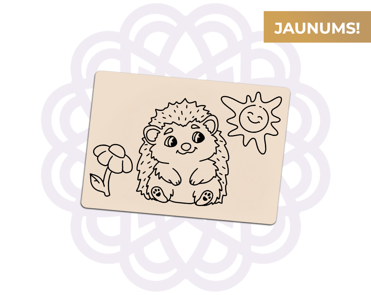 2025. gada dzīvnieks – Ezis ir A5 izmēra glezniņa bez iekļautām krāsainajām smiltīm.