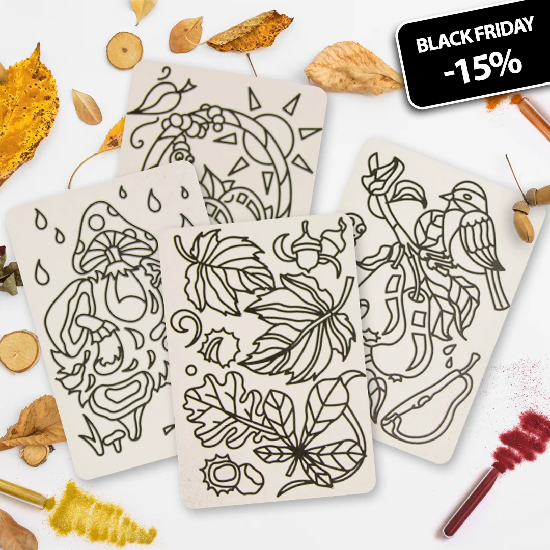 Atraisiet sava bērna radošumu ar mūsu smilšu glezniņu komplektu rudens tematikā!